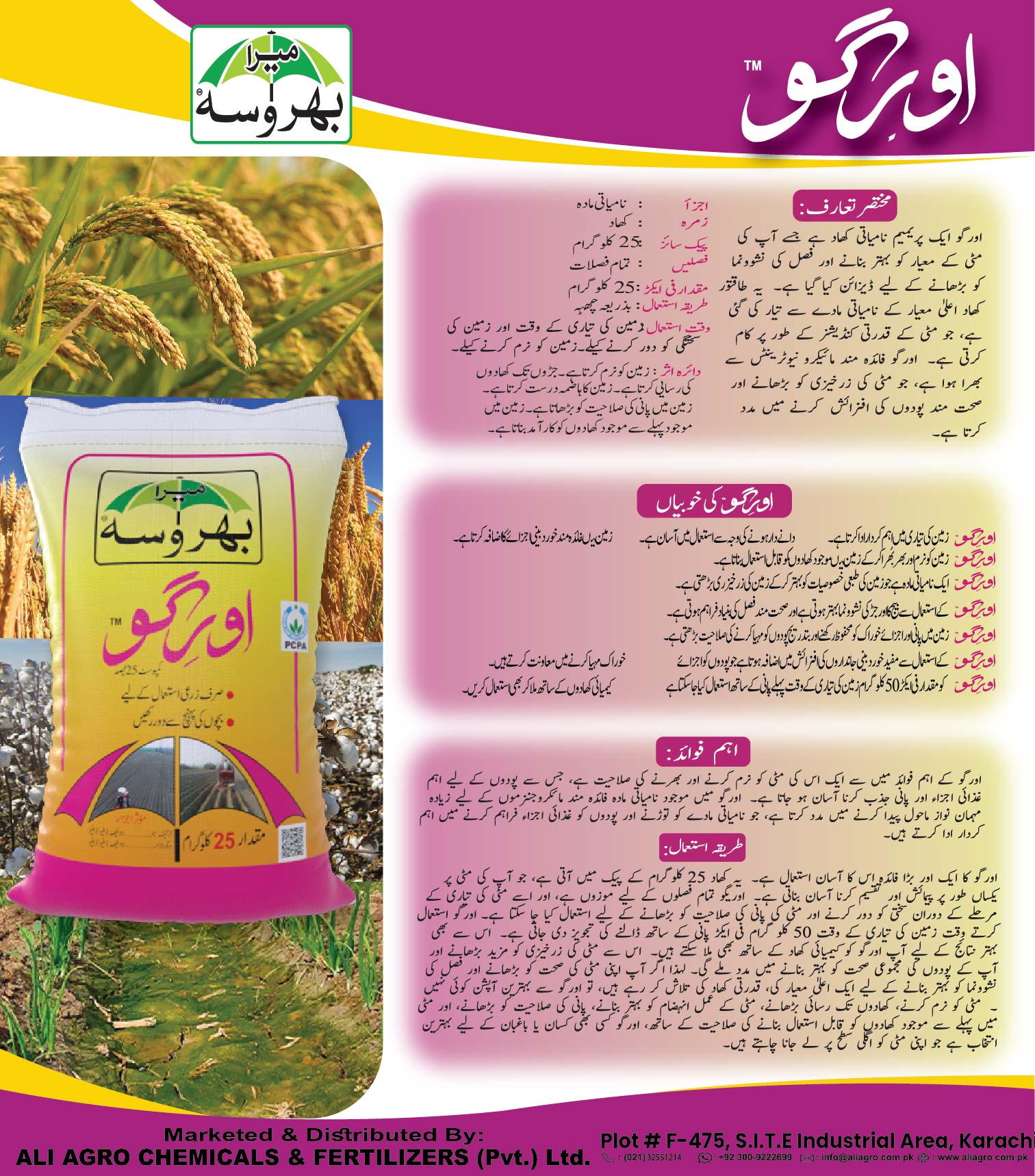 اورگو ایک پریمیم نامیاتی کھاد ہے جسے آپ کی مٹی کے معیار کو بہتر بنانے اور فصل کی نشوونما کو بڑھانے کے لیے ڈیزائن کیا گیا ہے۔ یہ طاقتور کھاد اعلیٰ معیار کے نامیاتی مادے سے تیار کی گئی ہے، جو مٹی کے قدرتی کنڈیشنر کے طور پر کام کرتی ہے۔ اورگو فائدہ مند مائیکرو نیوٹرینٹس سے بھرا ہوا ہے، جو مٹی کی زرخیزی کو بڑھانے اور صحت مند پودوں کی افزائش کرنے میں مدد کرتا ہے۔